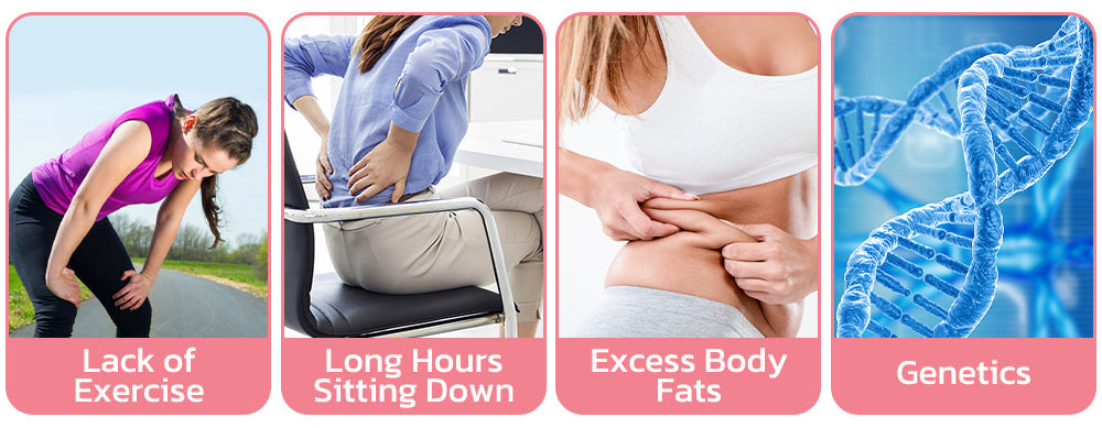 It also often happens from sitting for too long,sleeping in the fetal position, and repetitive activities.Lack of exercise can also contribute to dormant butt syndrome,This puts excess pressure and strain on other parts of your body too.lt can cause pain in your back,hips,and knees,especially when you exercise.
